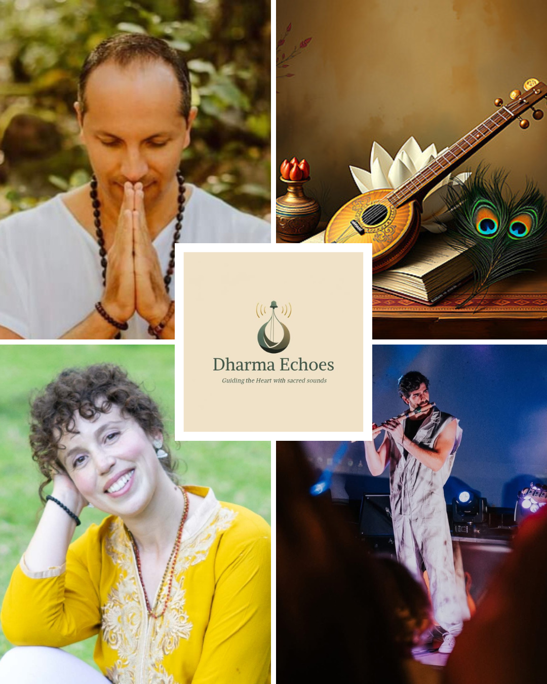 Dharma Echoes blends mantra, bhajan and devotional song to create moments of communion, meditation and heartfelt connection. Led by Marco Māruti (voice), Cátia Fernandes (voice, harmonium) and Francisco Nuno (Bansuri, guitar, jambé).